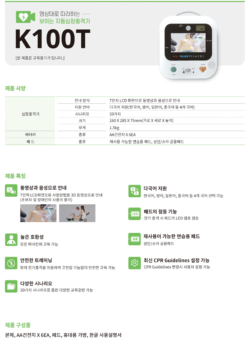 품명 및 모델명 교육용 보이는 자동심장충격기 트레이너 K100T